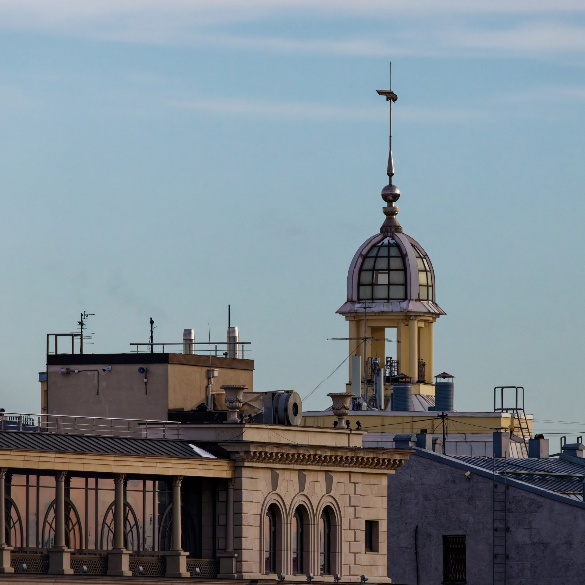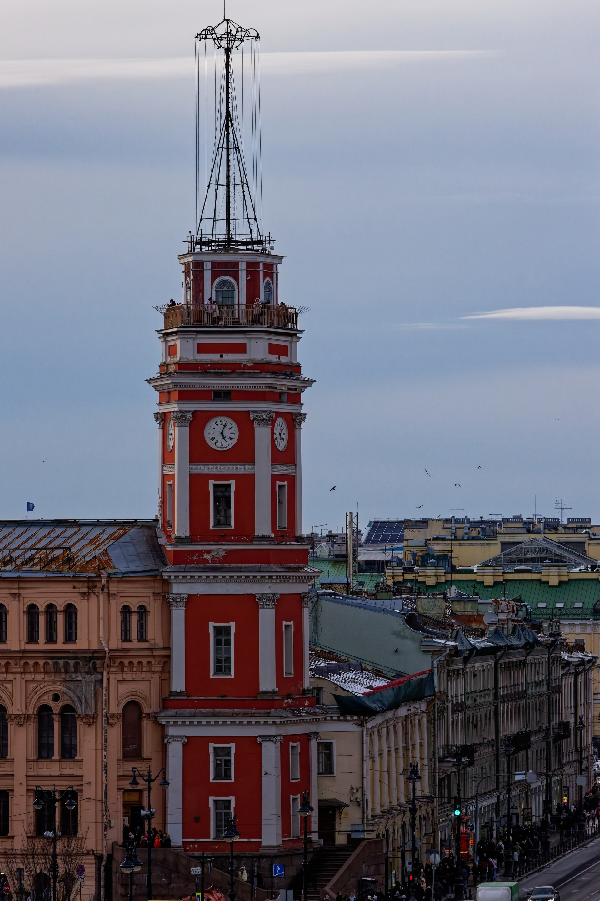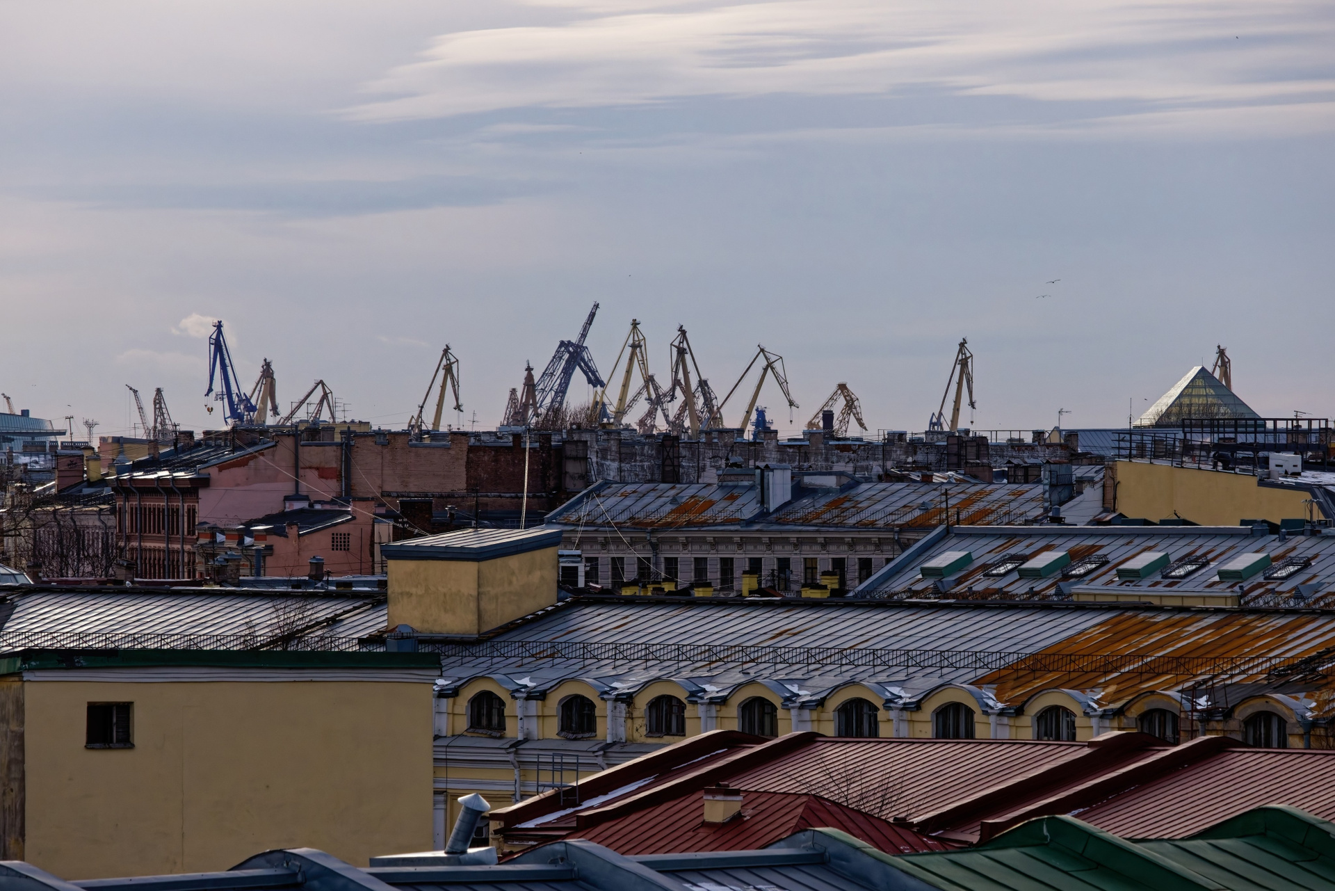 Это не высотная доминанта и не панорамный колосс. Высота скромная, обзор секторальный. Но здесь типичный вид с Питерской крыши, только легальный и безопасный.